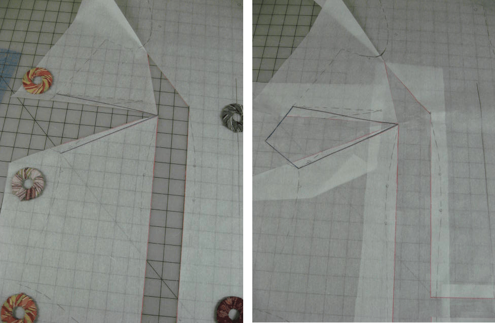 - To re-establish the vertical dart, I kept the right dart leg and copied the left leg from the original pattern.